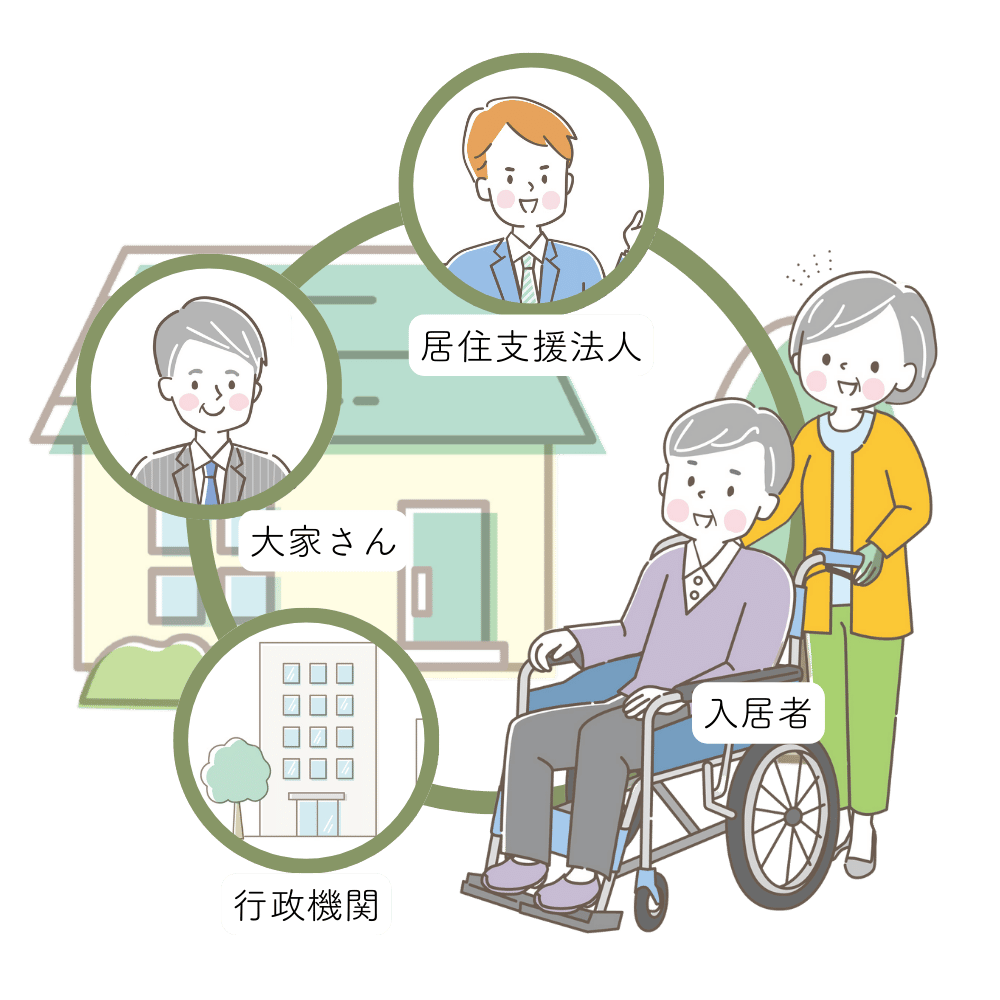 認定家賃債務保証業者が居住サポート住宅の入居者の家賃債務保証を原則引き受けます。